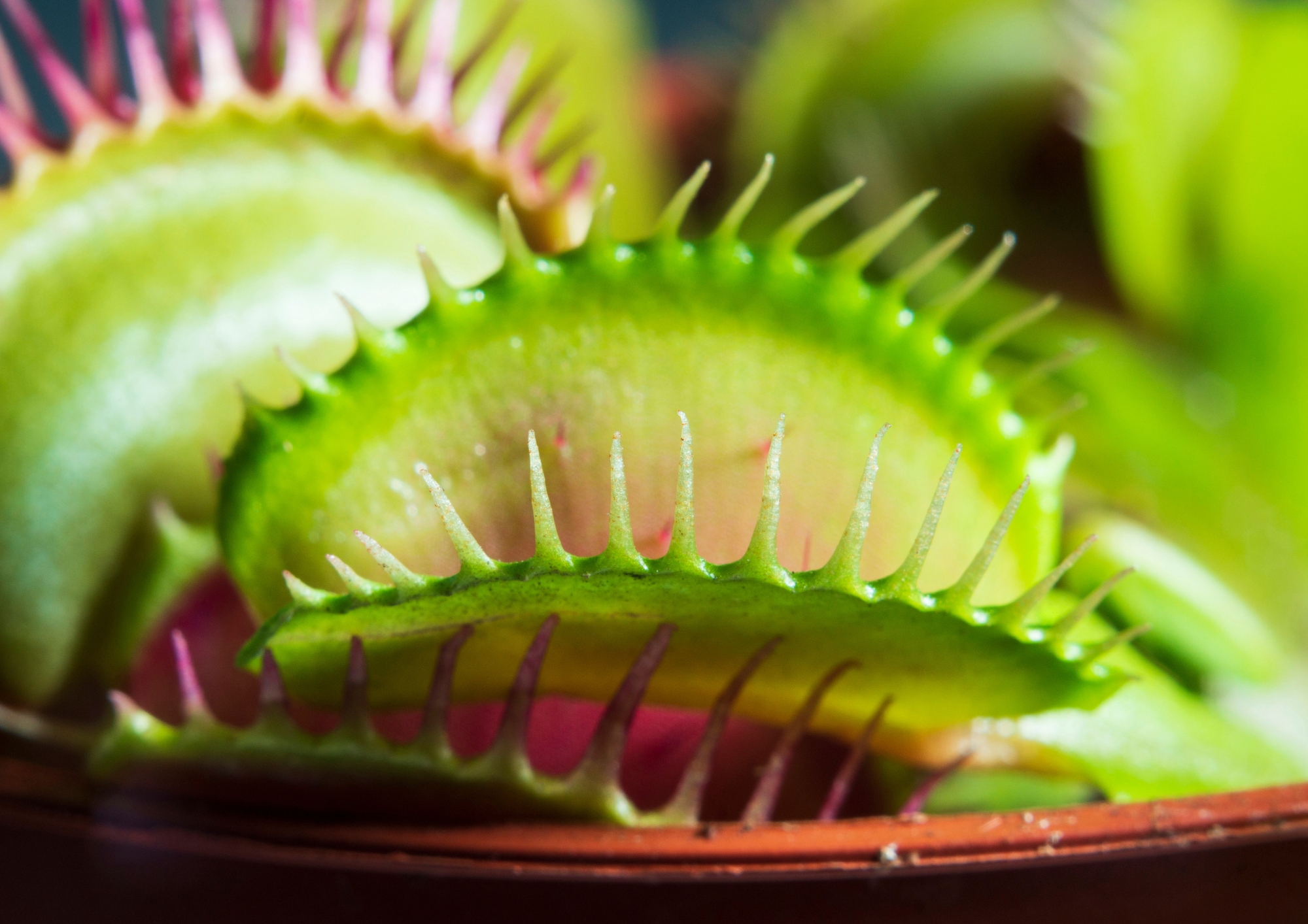 À l’intérieur de ses lobes, on peut voir des poils sensitifs qui sont aussi appelés pièges. Ces pièges peuvent atteindre jusqu’à 2 cm de longueur et servent de radar à insectes pour la plante. En effet, lorsqu’une proie frôle ces poils, la plante referme ses feuilles, capturant ainsi l’insecte et s’en nourrit.